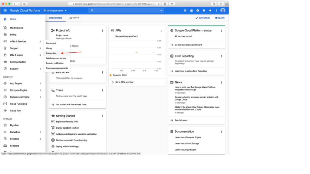 Nachdem die APIs aktiviert wurden, können Sie Ihren API-Schlüssel generieren